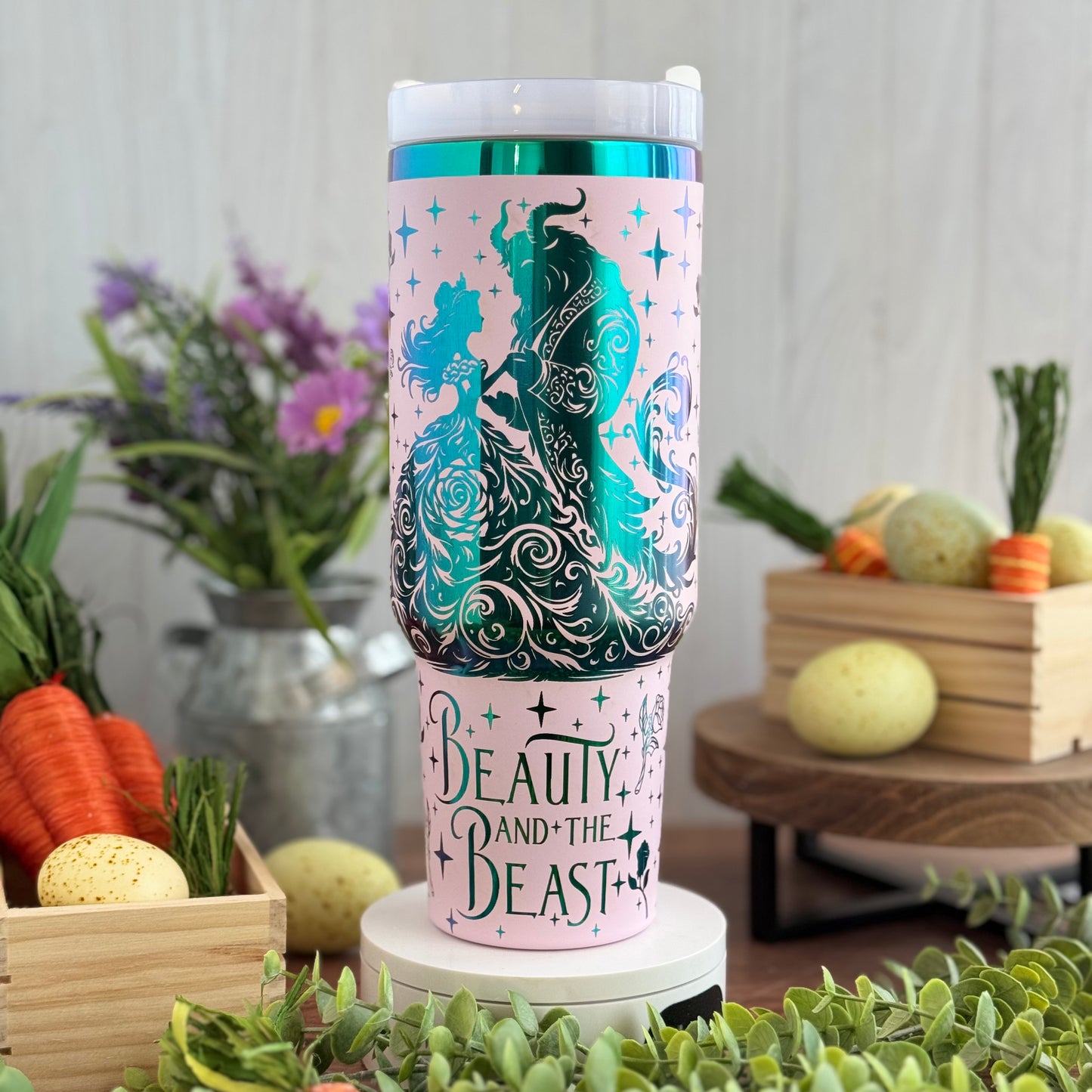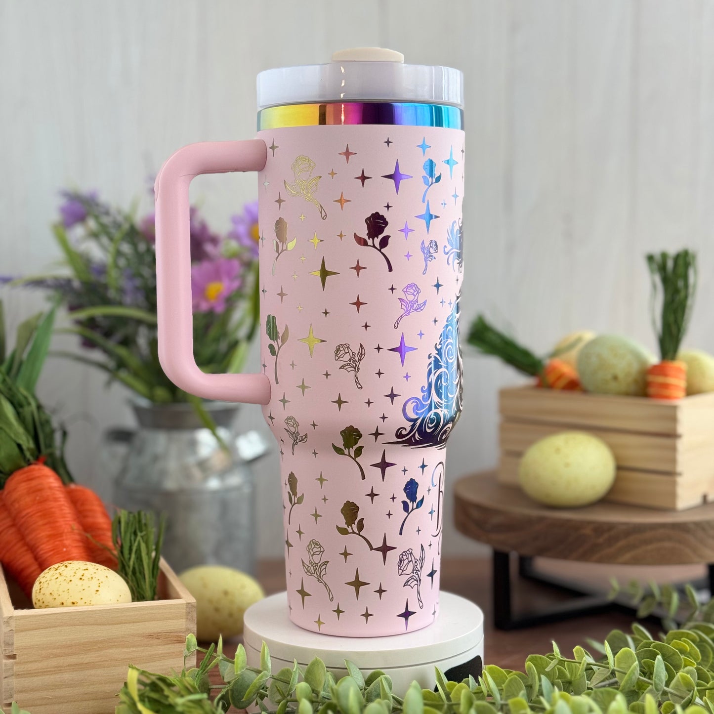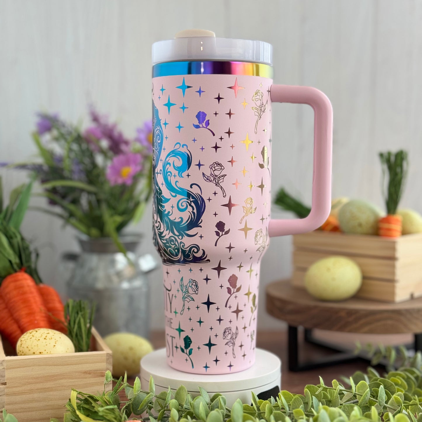 Engraved and ready to ship. Only 1 available at this price. Elegant Belle / Beauty and the Beast Design engraved on a Pastel Purple to Rainbow 40 oz Tumbler. You will receive this exact tumbler pictured.