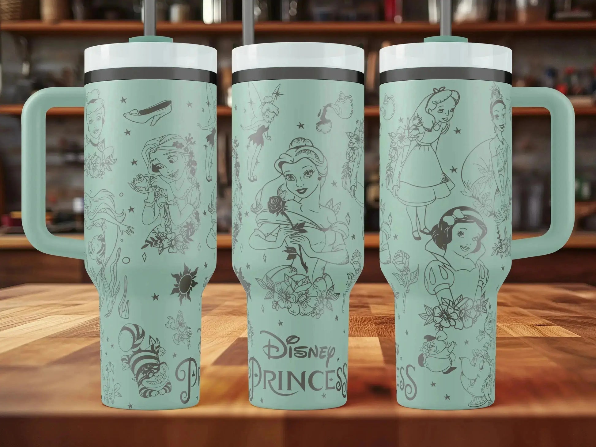 - Custom engraved tumbler option → personalize with names, quotes, or characters for a unique Disney princess gift
