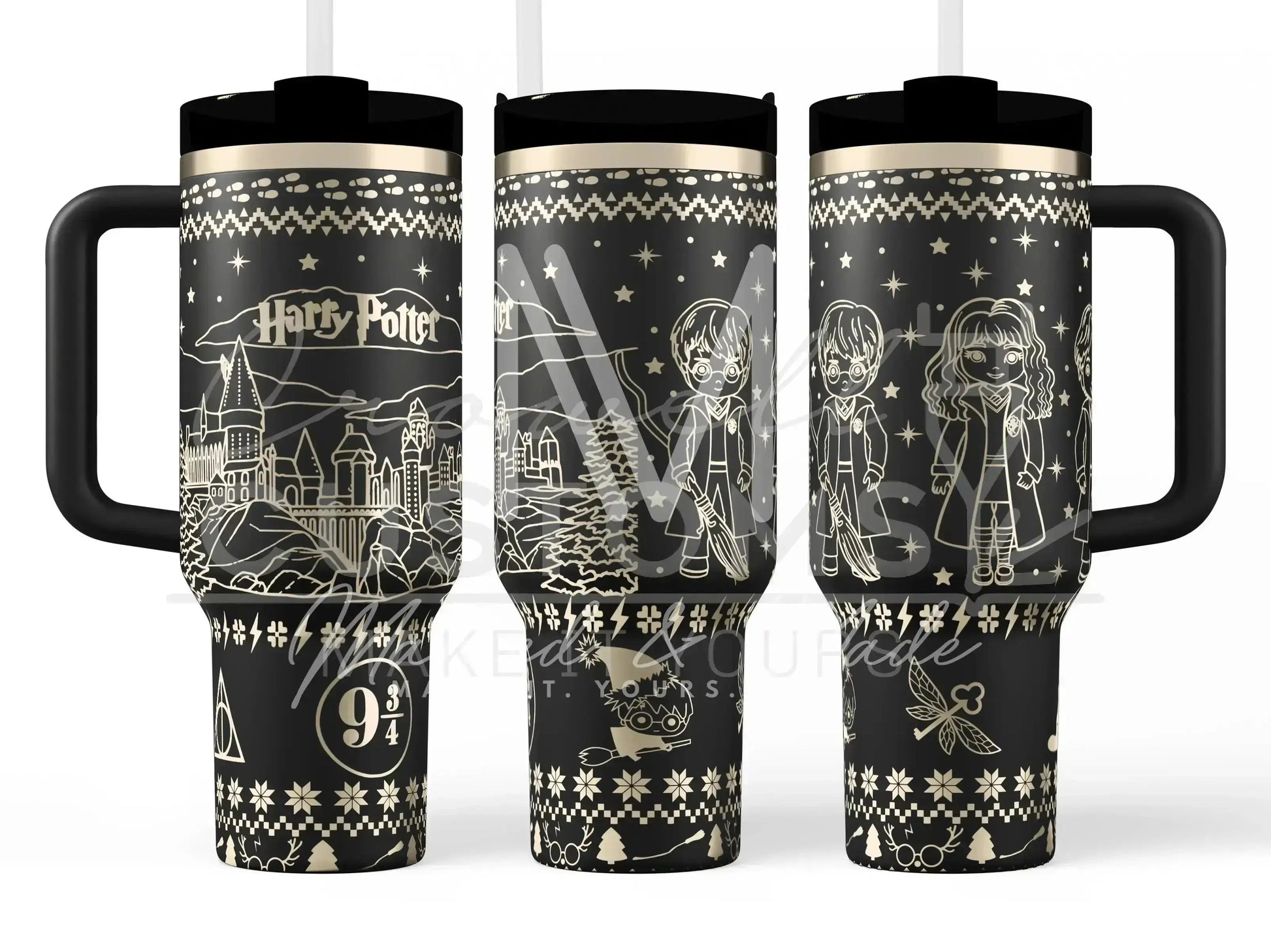 Calling all Harry Potter Fans! Show off your Hogwarts pride with our custom engraved Quencher Tumbler Available in 30 oz Stanley Dupe, 40 oz Stanley Dupe, and Genuine Stanley Branded variations featuring A Harry Potter / Ugly Sweater/Christmas theme. Unlike decals, our designs are laser etched onto the stainless steel and will last for the lifetime of the cup. Add a stainless steel or rainbow metal straw to your order for a complete set.