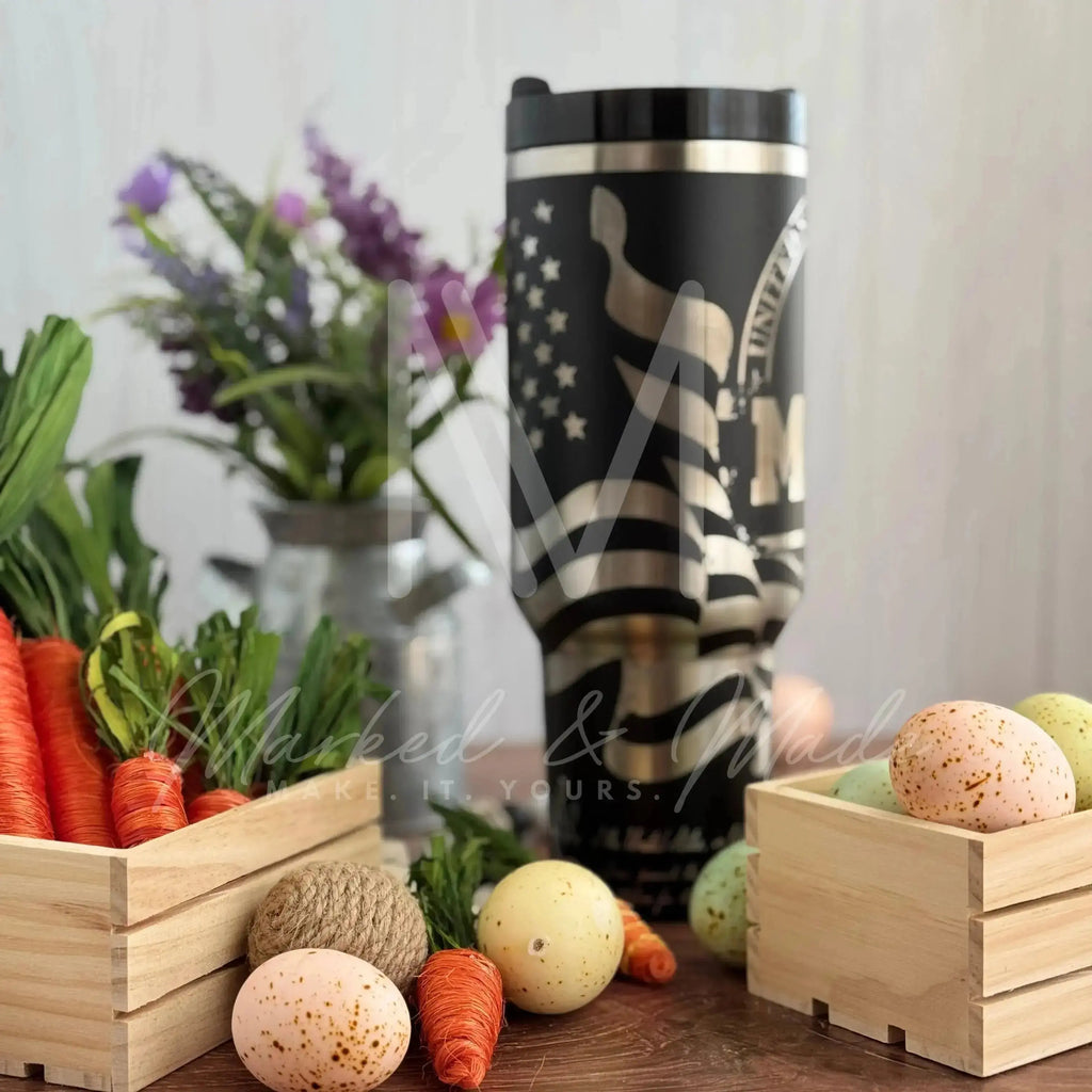 This engraved tumbler is the perfect MAGA pride cup designed for Republican drinkware collectors who want a durable, stylish, and functional political tumbler. Crafted from premium stainless steel tumbler material, this custom engraved tumbler features a precise laser etched design that lasts a lifetime, combining bold patriotic flair with everyday practicality.Available in multiple colors and sizes ranging from 10oz to a large 40 oz tumbler, it fits all Stanley accessories including lids, sleeves, and handles for a personalized experience. Whether you choose the compact 10oz for quick sips or the 40 oz tumbler for all-day hydration, this double insulated cup maintains beverage temperature for hours, keeping drinks hot or cold without sweating.Key features and benefits:- Custom engraved tumbler with lifetime-lasting laser etched design for enduring MAGA pride- Double insulated cup keeps beverages hot or cold for up to 8+ hours- Available in sizes: 10oz, 14oz, 16oz, 20oz, 30oz, and 40 oz tumbler options- Multiple colors available to match your style and preference- Compatible with Stanley lids, sleeves, and handles for versatile use- Made from premium stainless steel tumbler material that resists condensation and sweating- Choice between genuine Stanley branded tumblers or Stanley tumbler dupe versions to fit your budget without sacrificing quality- Personalization options available to add names, quotes, or custom designs on your political tumbler- Durable engraved drink cup ideal for daily use, outdoor activities like camping and tailgatingThis patriot drinkware essential combines practical performance with bold political statements. The laser etched design highlights crisp details on every personalized tumbler, including select patriotic American Flag motifs on coated colors. Join thousands of satisfied customers who trust Marked & Made for their daily hydration needs and proudly display support with high-quality Republican drinkware.Our engraved drink cup also makes an excellent gift or promotional item. Customization options allow adding business logos or personal graphics to create unique political tumblers that stand out. Each double insulated cup offers reliable temperature retention while resisting condensation thanks to its stainless steel construction.Order your engraved tumbler today from Marked & Made and upgrade your drinkware collection with a durable, stylish MAGA pride cup designed to impress and perform. Enjoy the confidence of owning a premium political tumbler backed by expert craftsmanship and positive reviews that confirm lasting value.Please note: Metal straws are not included but are available separately at 50% off when purchased with any tumbler.