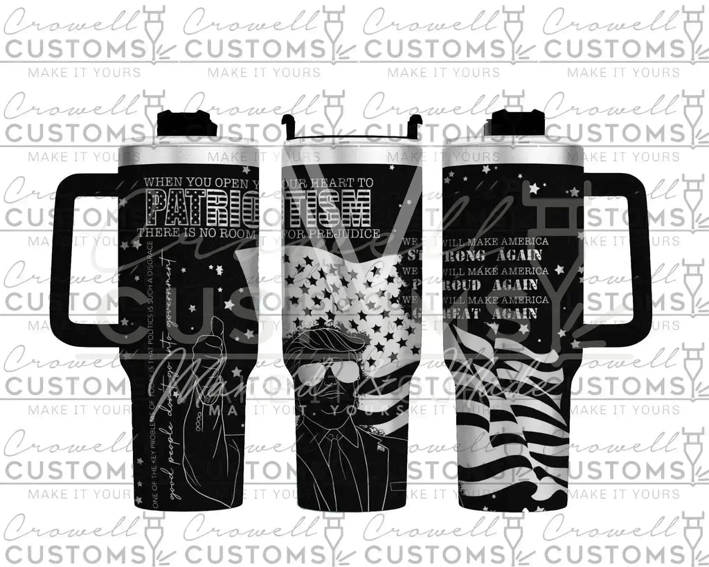 Calling all PATRIOTS! Show off your MAGA pride with our custom engraved Quencher Tumbler Available in 30 oz Stanley Dupe, 40 oz Stanley Dupe, and Genuine Stanley Branded variations featuring a MAGA/Republican/Trump theme. Unlike decals, our designs are laser etched onto the stainless steel and will last for the lifetime of the cup. Add a stainless steel or rainbow metal straw to your order for a complete set.