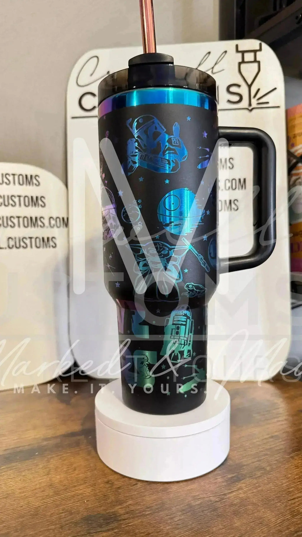 Calling all Star Wars fans! Show off your Jedi - or- Sith pride with our custom engraved Quencher Tumbler Available in 30 oz Stanley Dupe, 40 oz Stanley Dupe, and Genuine Stanley Branded variations featuring a Star Wars theme. Unlike decals, our designs are laser etched onto the stainless steel and will last for the lifetime of the cup. Add a stainless steel or rainbow metal straw to your order for a complete set.